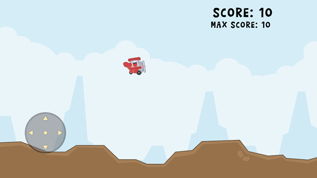 Un juego en el que controlas un avión y tratas de esquivar los obstáculos que van apareciendo. Cada obstáculo que se esquiva aumenta la puntuación a +1. También aparecerán estrellas que puedes agarrar y obtendrás diferentes puntajes como +1, +3 y -3.